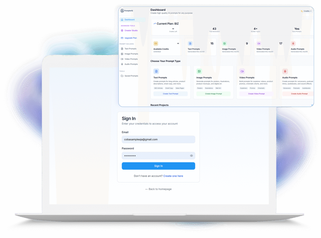 🔹 Full access to PrompterIQ: Text, Image, Video & Audio prompt creation